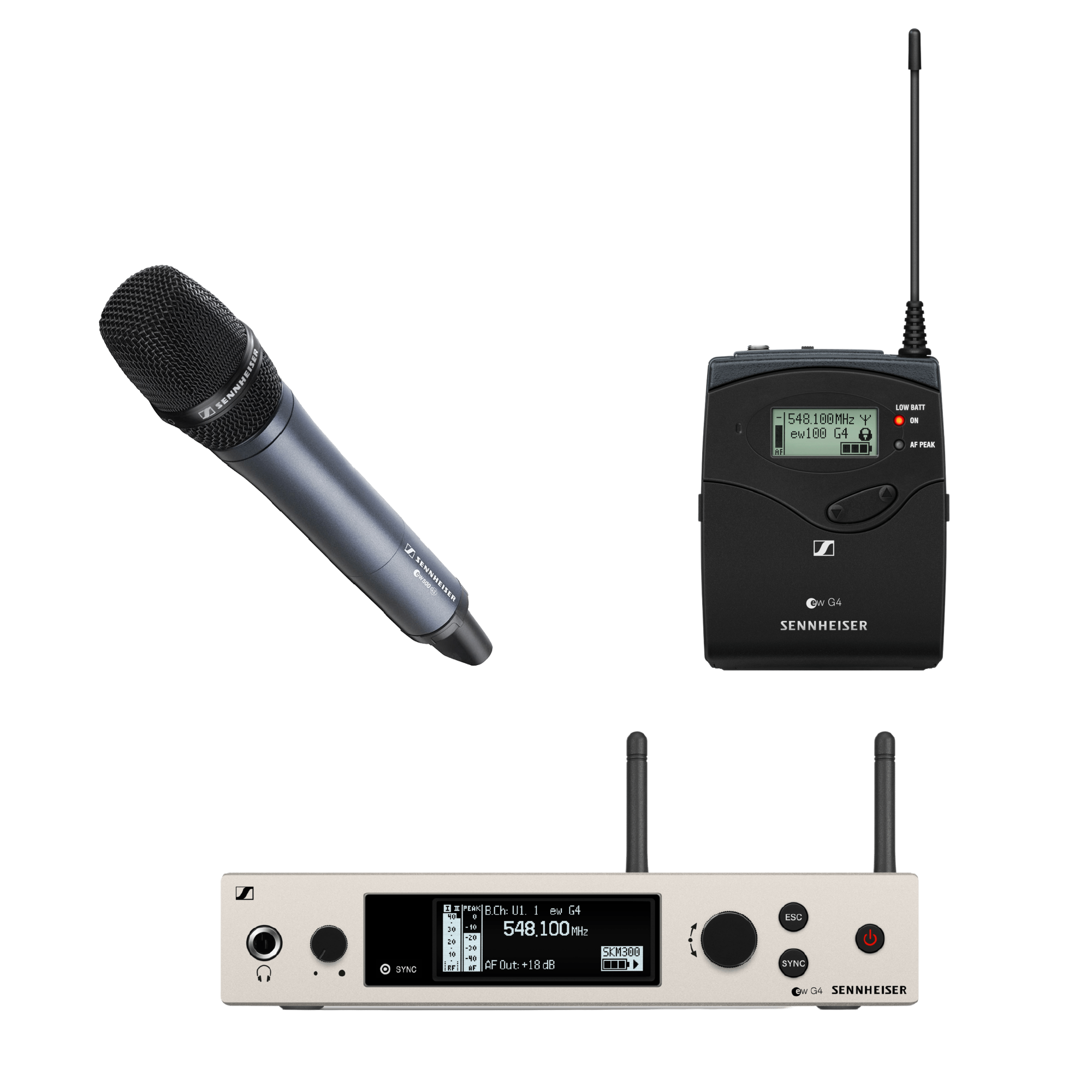 Sennheiser Handheld Microphone (G3/G4) or Sennheiser Belt Pack (G3/G4) – Choose between a handheld transmitter for speeches and performances, or a belt pack for use with lapel or clip-on microphones.