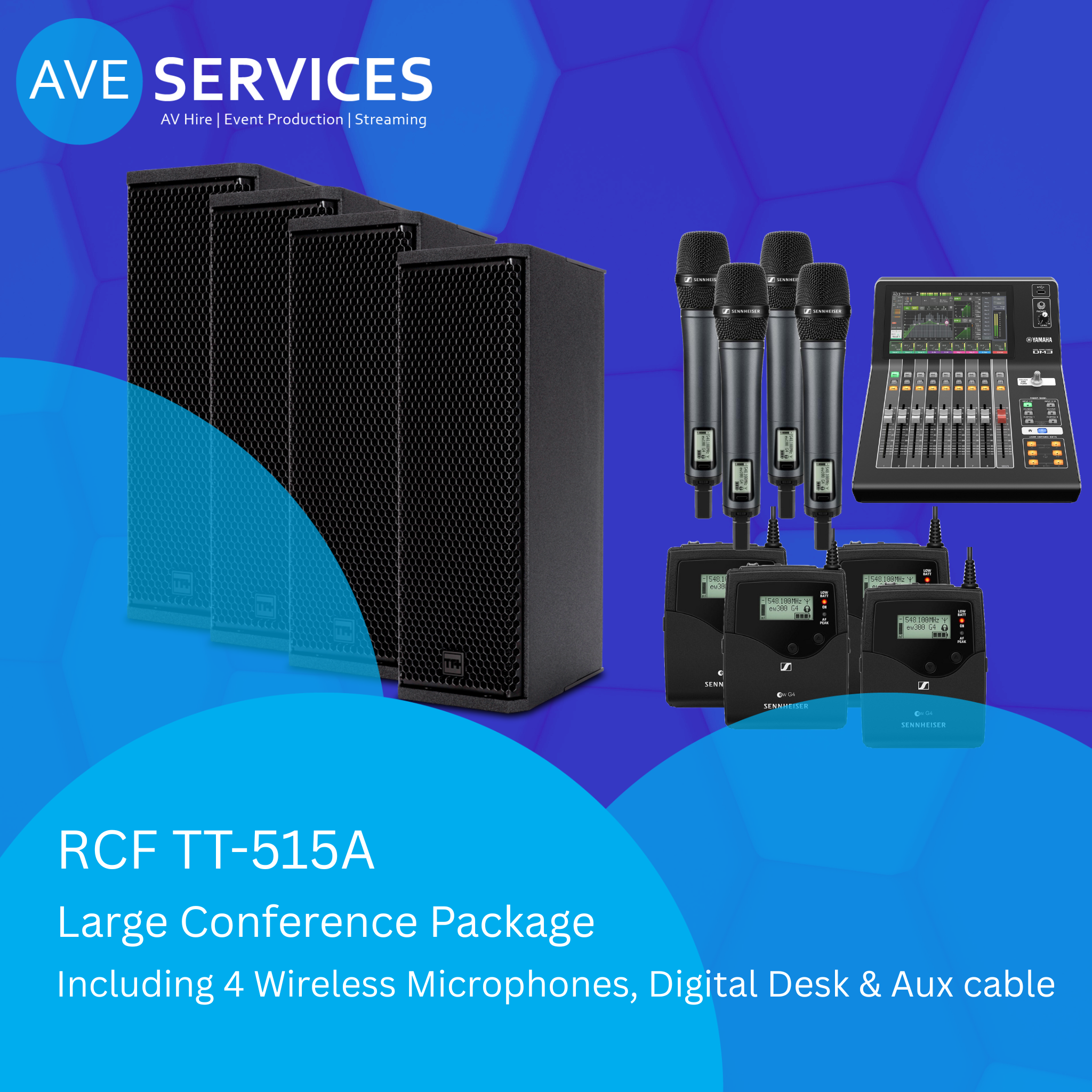 - ✅ 4 × Sennheiser Wireless Microphones – Choice of handheld or beltpack with lapel headset for maximum flexibility