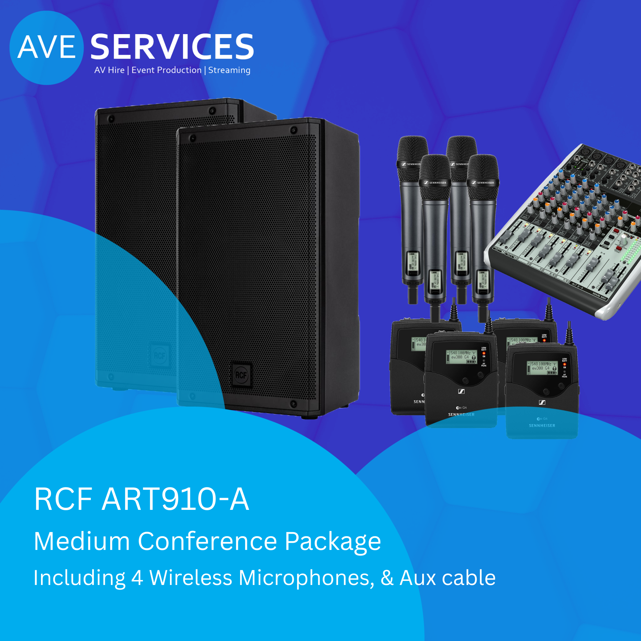 - ✅ 2 × RCF ART910-A Active Speakers – 2100W peak output with excellent speech clarity and room coverage