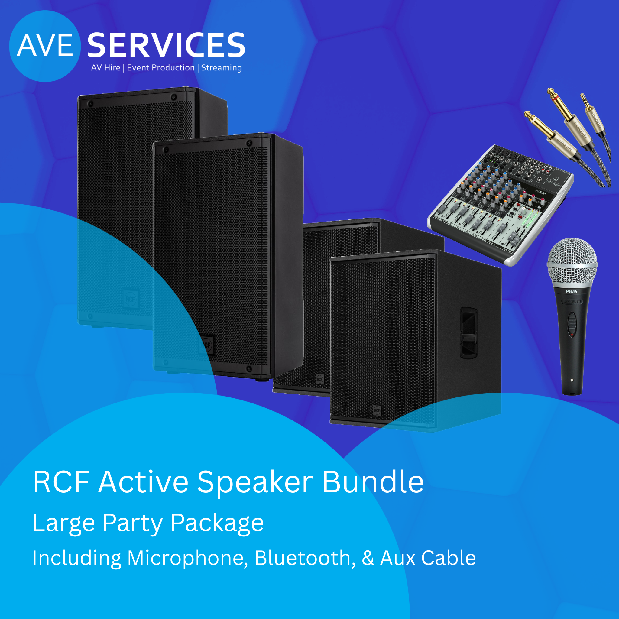 - ✅ 2 × RCF ART 910-A Active Speakers – 2100W peak output with clear top-end and vocal clarity