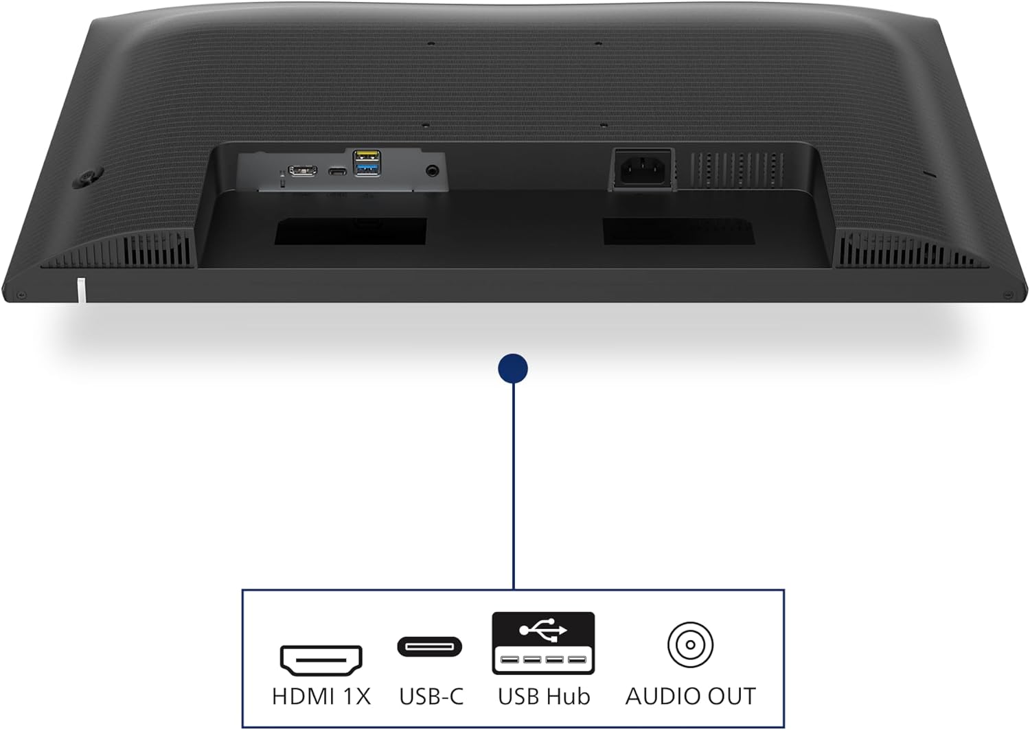 Integrated USB hub (2 × USB-A) for connecting peripherals at the screen.