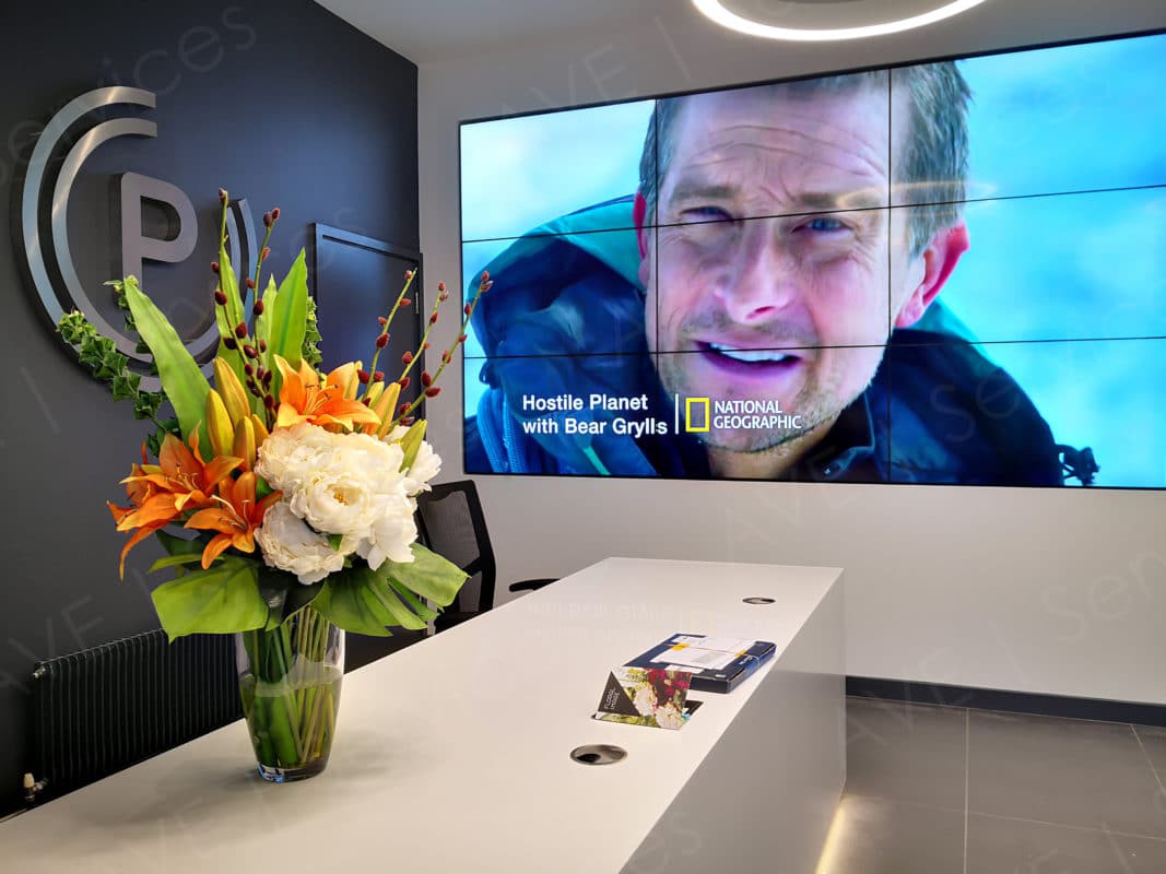 Plimsoll productions in Bristol contacted AVE Services to quote for a new videowall in their reception/lobby area – this would be the main feature piece in the room as part of a redesign.